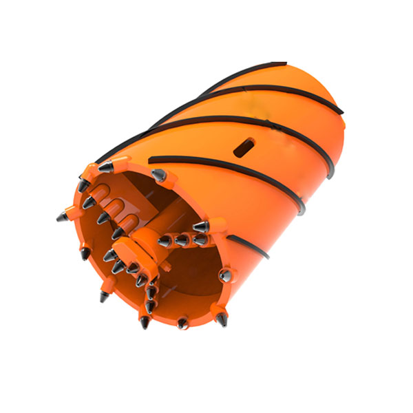 Shell Thickness = 20 mm Height = 1000 mm Bottoms Fixed and rotating bottom in Thickness = 40 mm Hard faced ribbings HB 600 Blades Thickness = 40 mm Equipment Teeth Esco 18TU25T Pilot bit Kelly box 200x200 mm; 130x130 mm